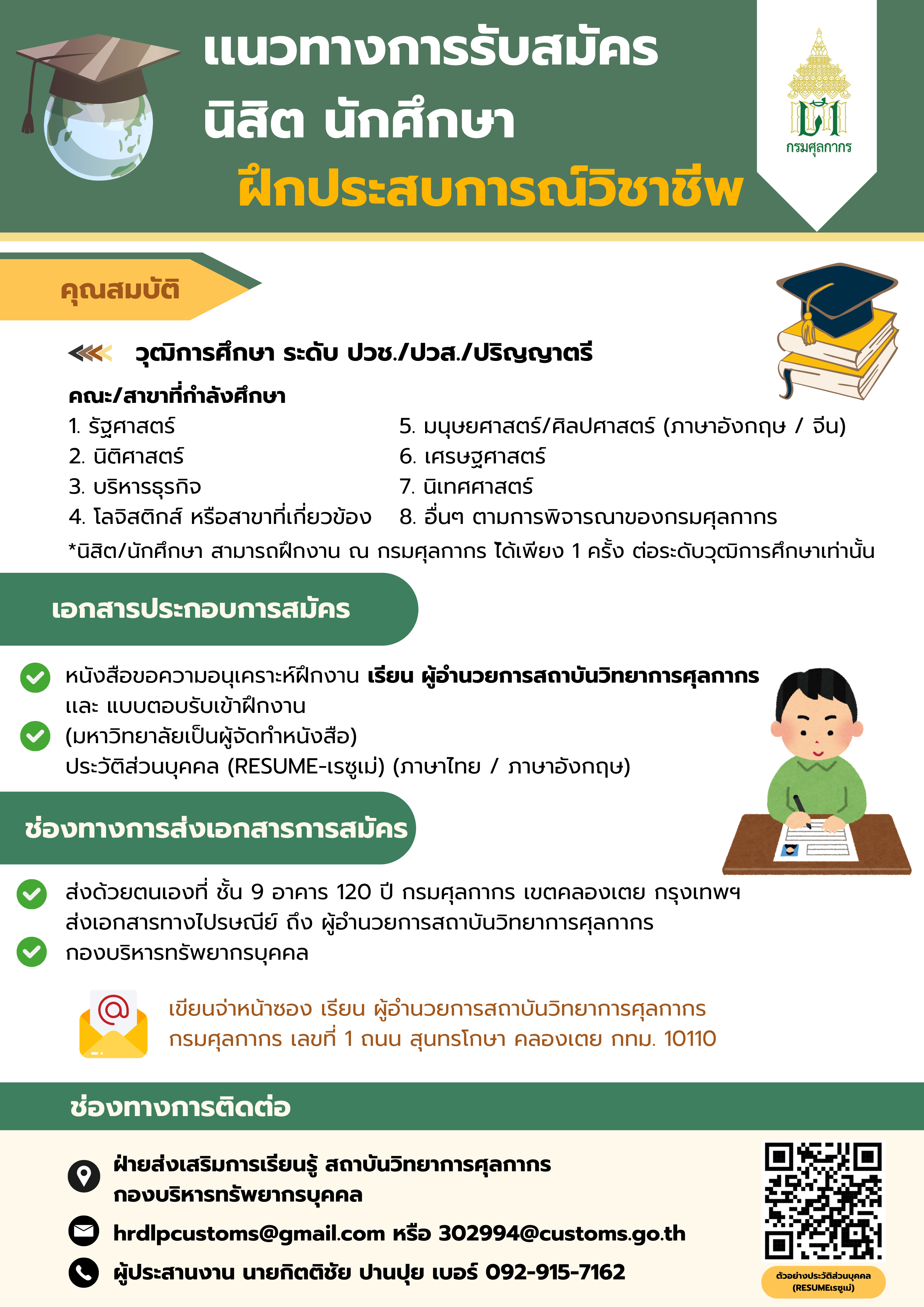 แนวทางการรับสมัคร นิสิต นักศึกษา ฝึกประสบการณ์วิชาชีพของกรมศุลกากร